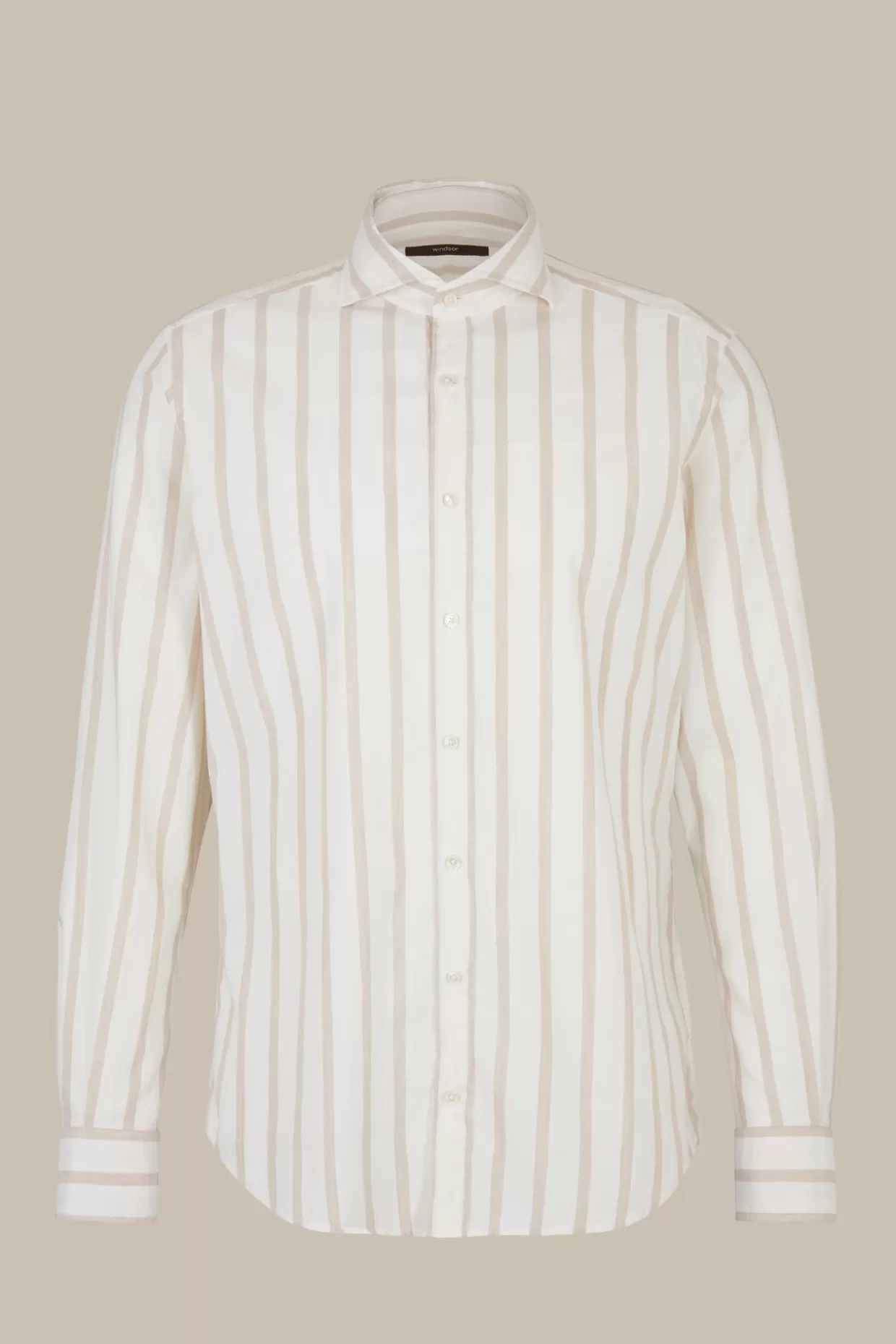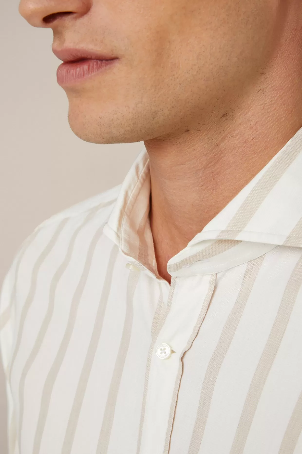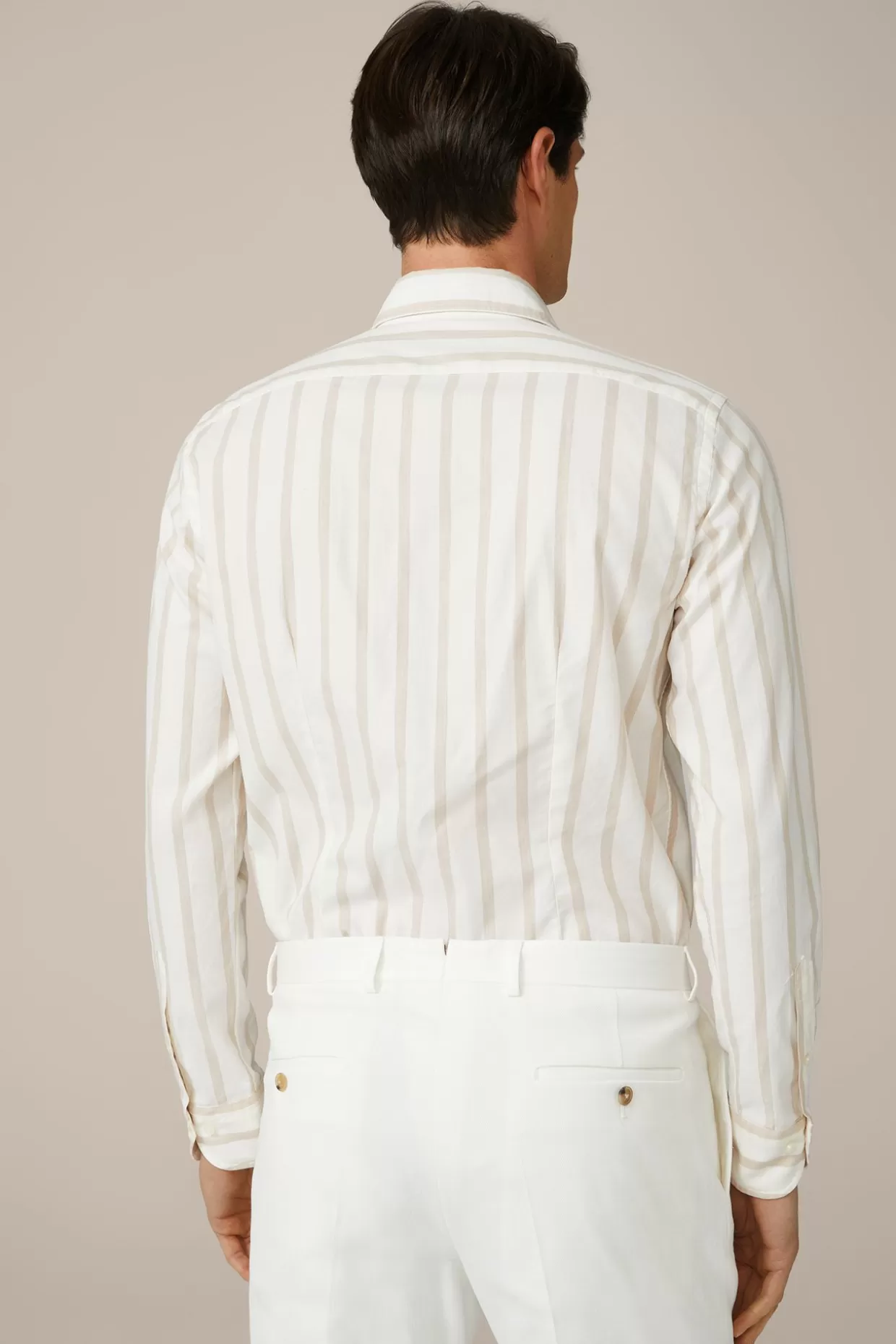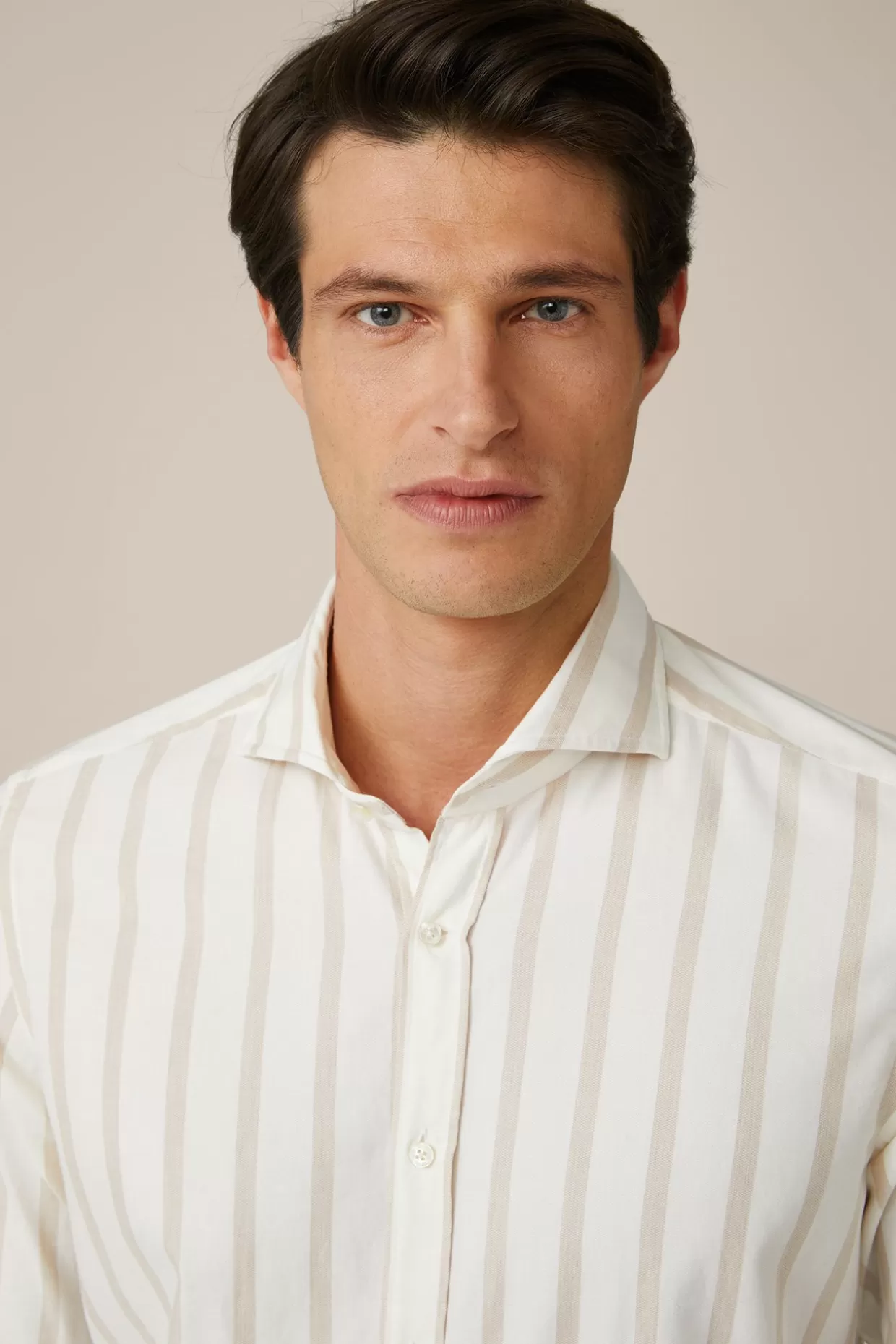 Aus Reiner, Fein Strukturierter Baumwolle Überzeugt Das Hemd Lano In Creme-Braun Gestreift Aus Dem Hause Windsor Als Stilvolles Essential. Für Klassische Details Sorgen Ein Verstärkter Haifisch-Kragen, Manschettenärmel Mit Dachschlitz Und Eine Schmale Schulterpasse. Der Abgerundete Saum Mit Seitlich Eingefassten Logo-Partien Rundet Den Style Ikonisch Ab.