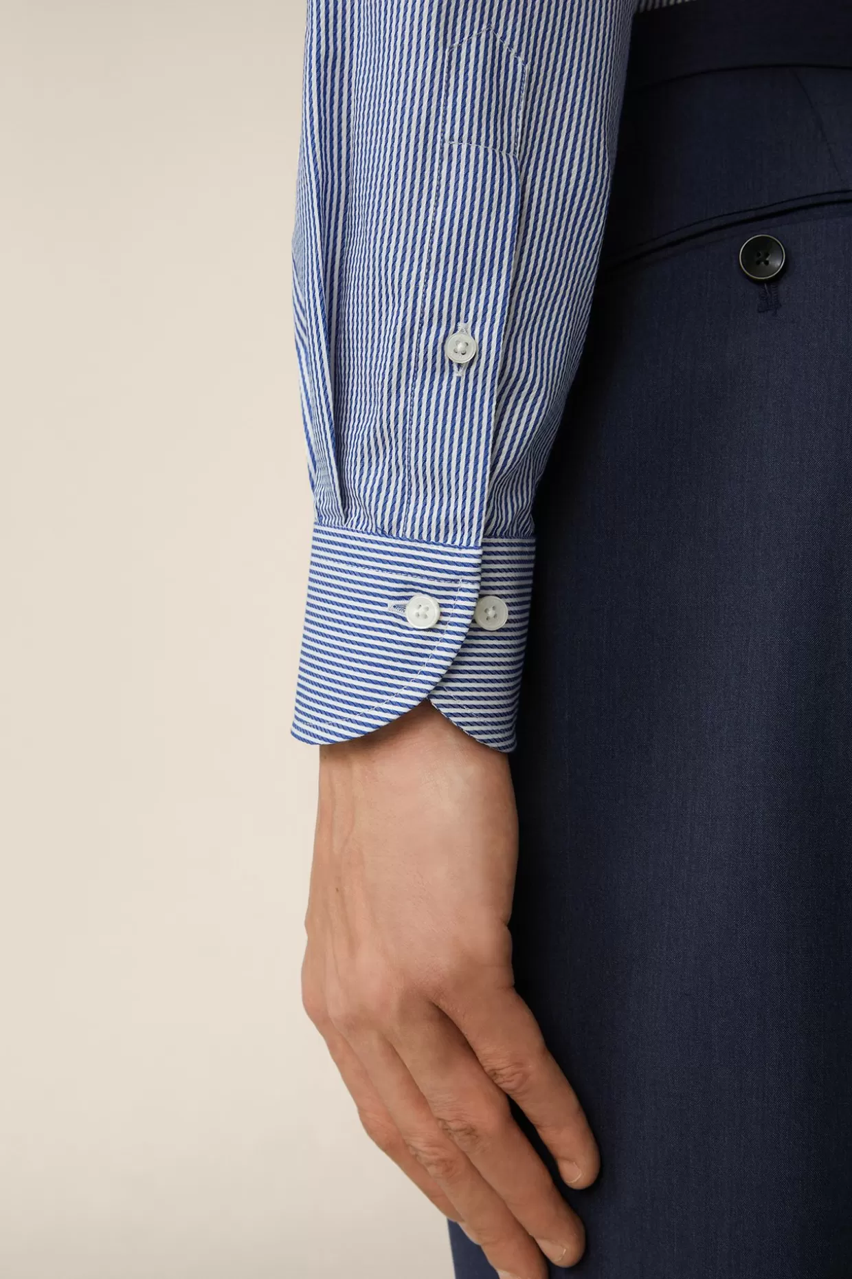 Favorit Für Business- Und Smarte Lifestyle-Looks: Das Hemd Trivo In Blau-Weiß Gestreift Aus Dem Hause Windsor Überzeugt Als Kombinationsstarker Allrounder. Perlmuttglanzknöpfe, Ärmel Mit Abgerundeter Zwei-Knopf-Manschette Und Dachschlitz Sowie Seitlich Eingefasste Logos Am Saum Zeichnen Das Stilvolle Flair Des Designs Aus – Komfortabel Aus Reiner Baumwolle.